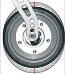 | 9. | zu den kleinen, ungesteuerten Lenkrädern könnte zusätzlich ein starres Rad durch einen einfachen Hebel arretiert werden, so daß der Rollstuhl dann NUR NOCH geradeaus fährt, weil in diesem Moment keinerlei Kurvenfahrt gewünscht ist, kleine Korrekturen können durch schräges Ankippen und Umsetzen realisiert werden. | ||